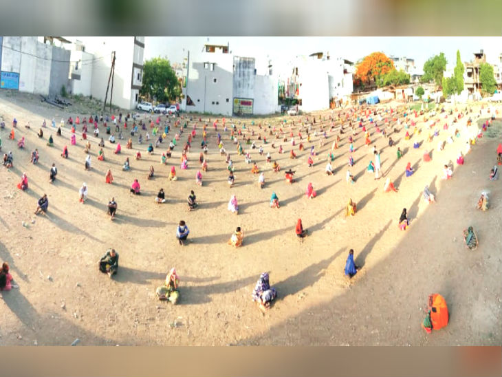 આ તસવીર ઈન્દોરની છે. અહીંયા ભૂતેશ્વર મહાદેવ સમિતિ પશ્વિમ ક્ષેત્રમાં ગોપુર ચાર રસ્તાના ખાલી મેદાન પર આઠ વસ્તીઓના લગભગ 200 લોકોને રોજ સોશિયલ ડિસ્ટેસીંગ જાળવીને જમવાનું આપવામાં આવે છે.
