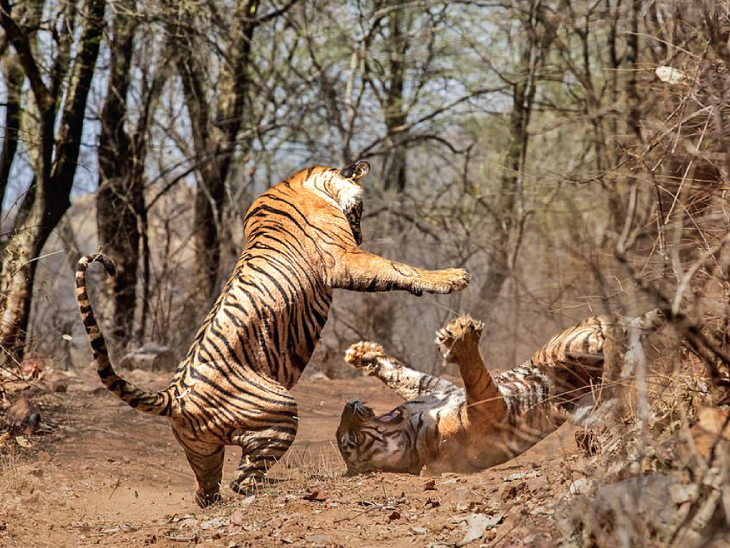 આ તસવીરોને મહારાષ્ટ્રના ફોટોગ્રાફર પરાગ ભટ્ટે ક્લિક કરી છે. તેમણે કહ્યું કે, છેલ્લા 15 વર્ષમાં મેં ક્યારેય બે વાઘ વચ્ચે આવી લડાઈનથી જોઈ.