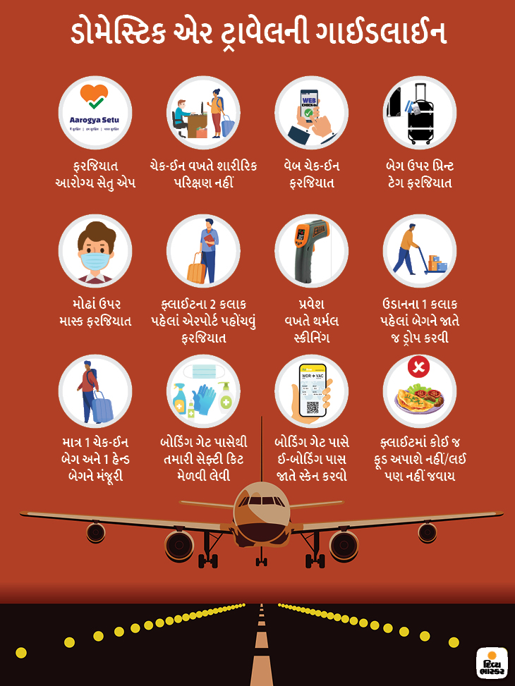 ડોમેસ્ટિક ફ્લાઈટ શરૂ થતાં પહેલાં દરેક રાજ્યોએ યાત્રીઓ માટે કડક સ્ટાર્ન્ડડ ઓપરેટિંગ પ્રોસીજર (એસઓપી) નક્કી કરી છે. દરેક યાત્રીઓનું થર્મલ સ્ક્રીનિંગ થશે. તેમને 14 દિવસ માટે હોમ ક્વોરોન્ટિનમાં રહેવું પડશે.