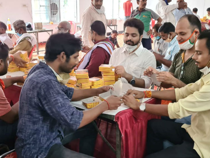 ભૂમિપૂજનના દિવસે અયોધ્યાના દરેક ઘરમાં ચાર લાડુંવાળું પેકેટ પહોંચાડવામાં આવશે. તેની જવાબદારી બજાવી રહેલા ઋષિના જણાવ્યા મુજબ 14 લાખ લાડુ બનાવવામાં આવી રહ્યાં છે, જેને સાડા ત્રણ લાખ પેકેટમાં ભરવામાં આવશે. એક પેકેટમાં ચાર લાડુ છે. જિલ્લા ભાજપની ટીમ તેને સમગ્ર અયોધ્યામાં પહોંચાડશે.