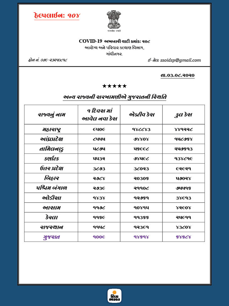 અન્ય રાજ્યોની સરખામણીએ ગુજરાતમાં નવા કેસ, કુલ કેસ અને એક્ટિવ