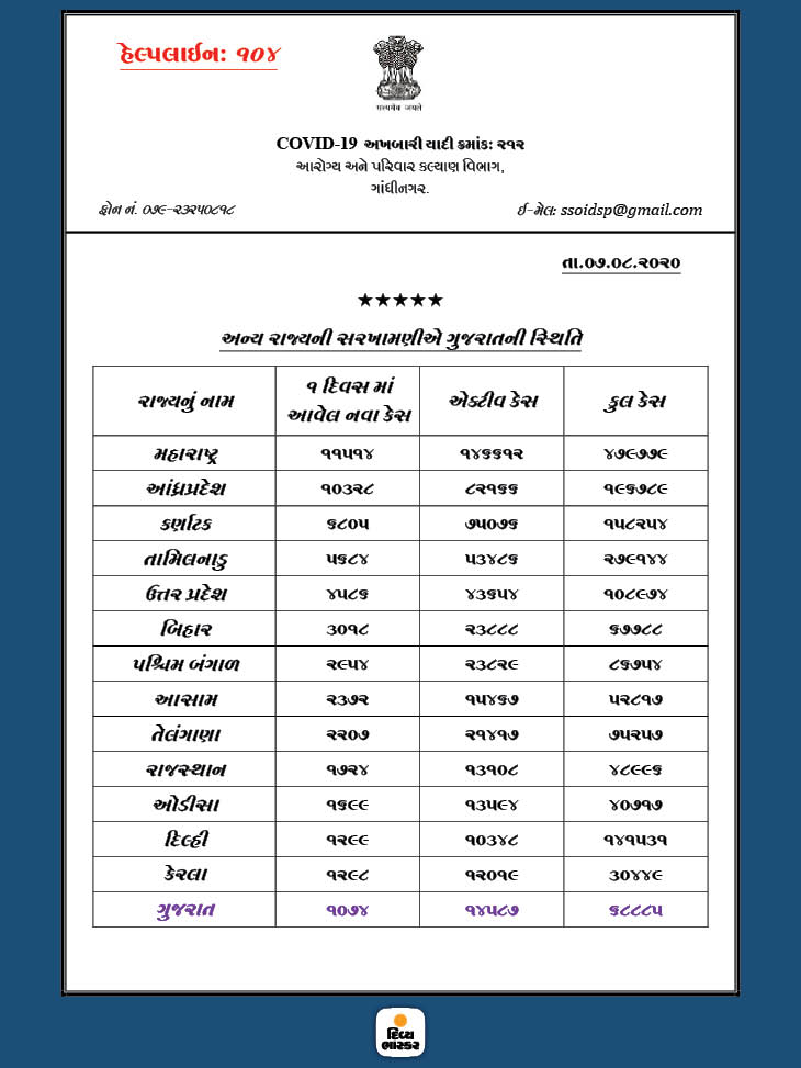 અન્ય રાજ્યોની સરખામણીએ ગુજરાતમાં નવા કેસ, કુલ કેસ અને એક્ટિવ